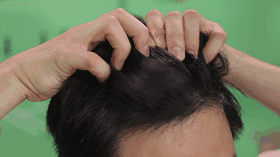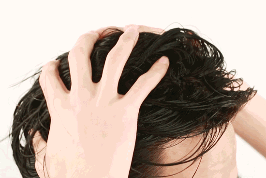 对头部穴位和发根进行按摩。