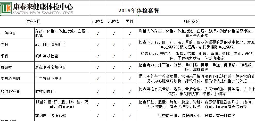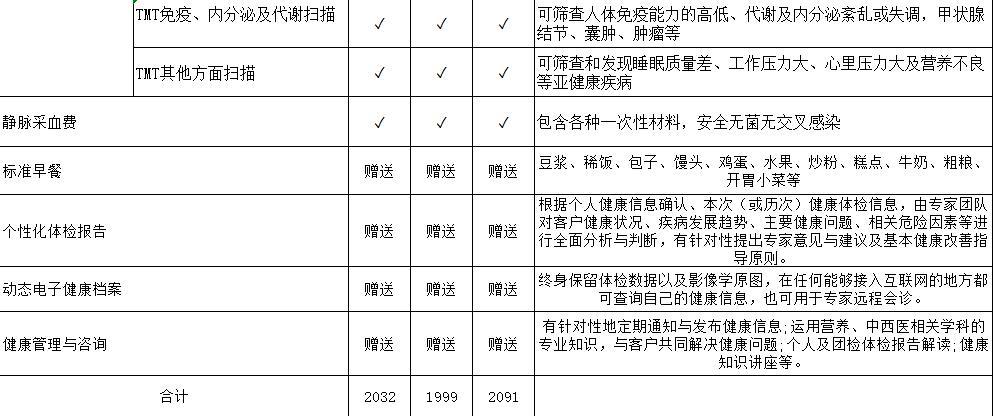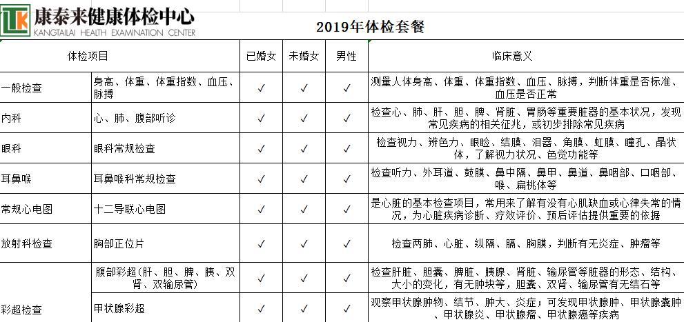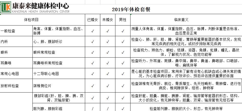 康泰莱2000元体检套餐